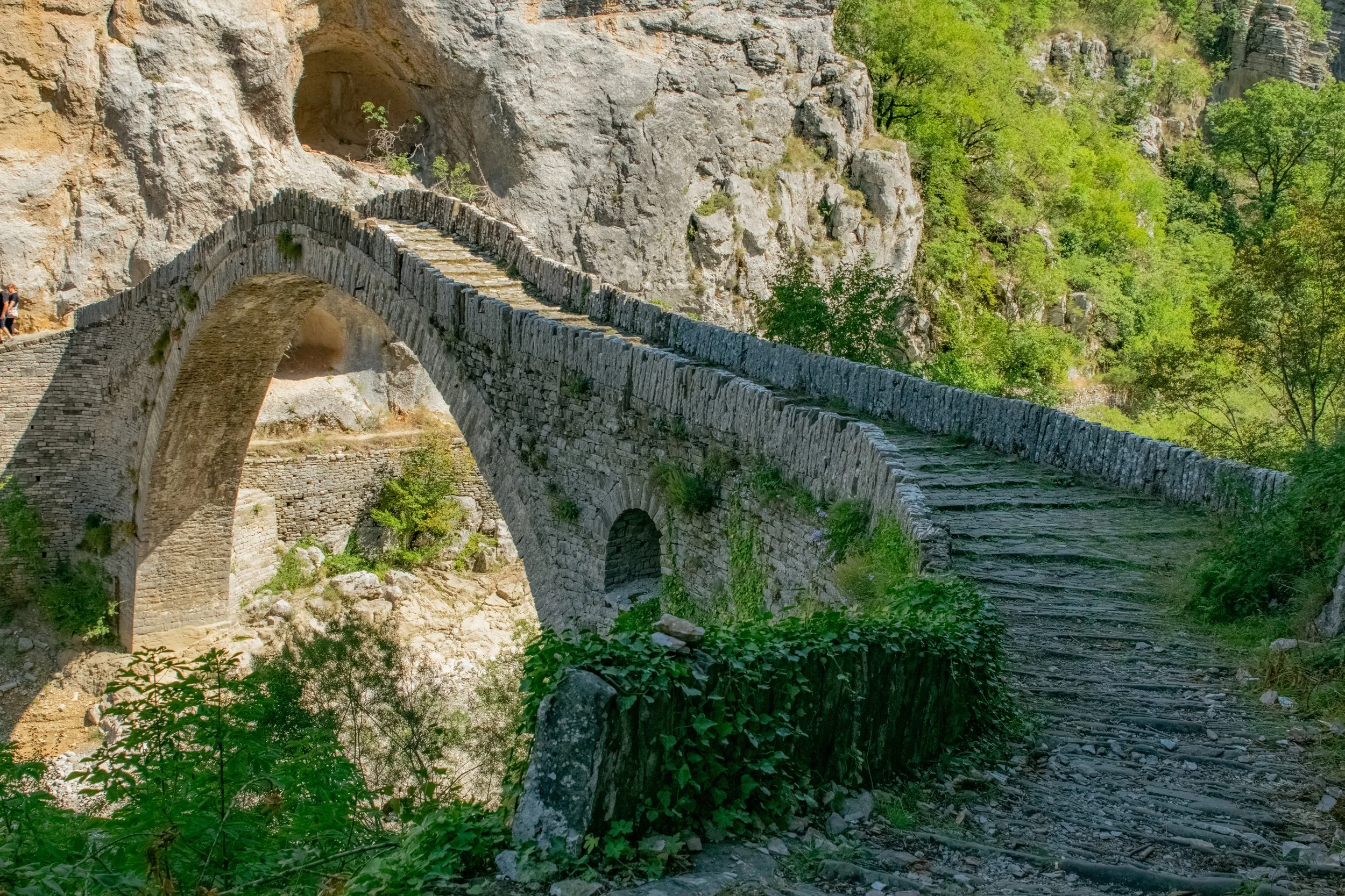 Scenes from Epirus — children in traditional dress dance in the village square, mountains rise in quiet strength, and stone bridges carry the rhythm of footsteps across generations. Together, they reflect the living spirit of heritage and the enduring beauty of home.